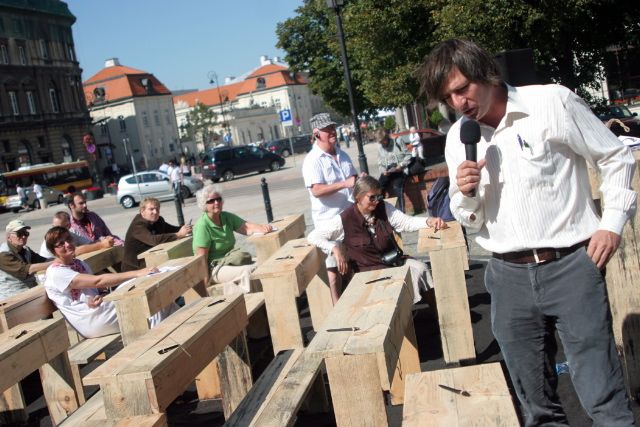 Pierwszego września na skwerze przy Krakowskim Przedmieściu, róg Karowej, w miejscu zbombardowanej kamienicy, o świcie rozstawili 70 drewnianych szkolnych ławek inspirowanych instalacja Tadeusza Kantora ławka. W południe rozpoczęli Jawne Komplety. W wielu klasach równocześnie, pod gołym niebem, do zmierzchu były prowadzone lekcje. Tym razem nikt nam nie przerwał. Lekcje mógł poprowadzić każdy.