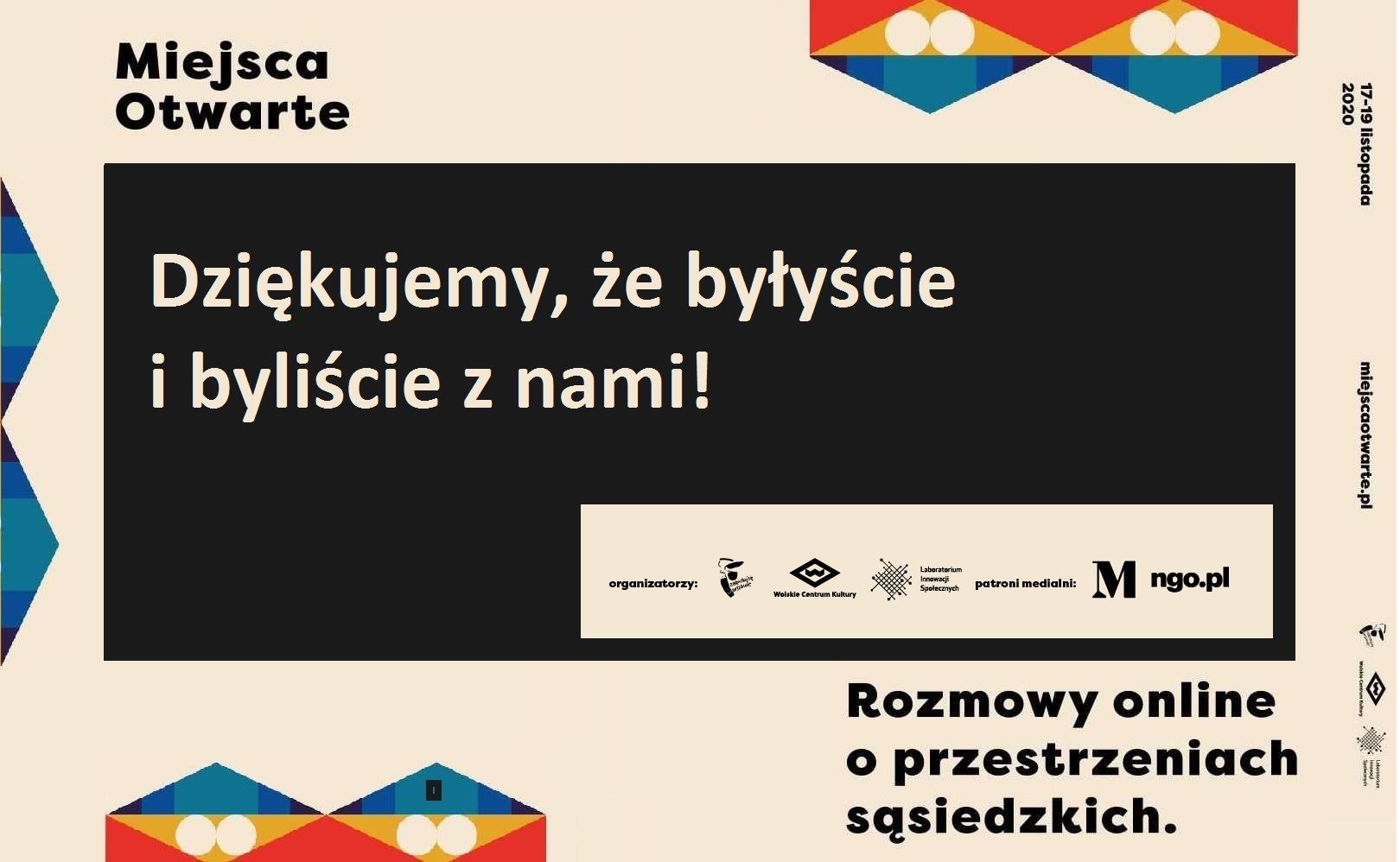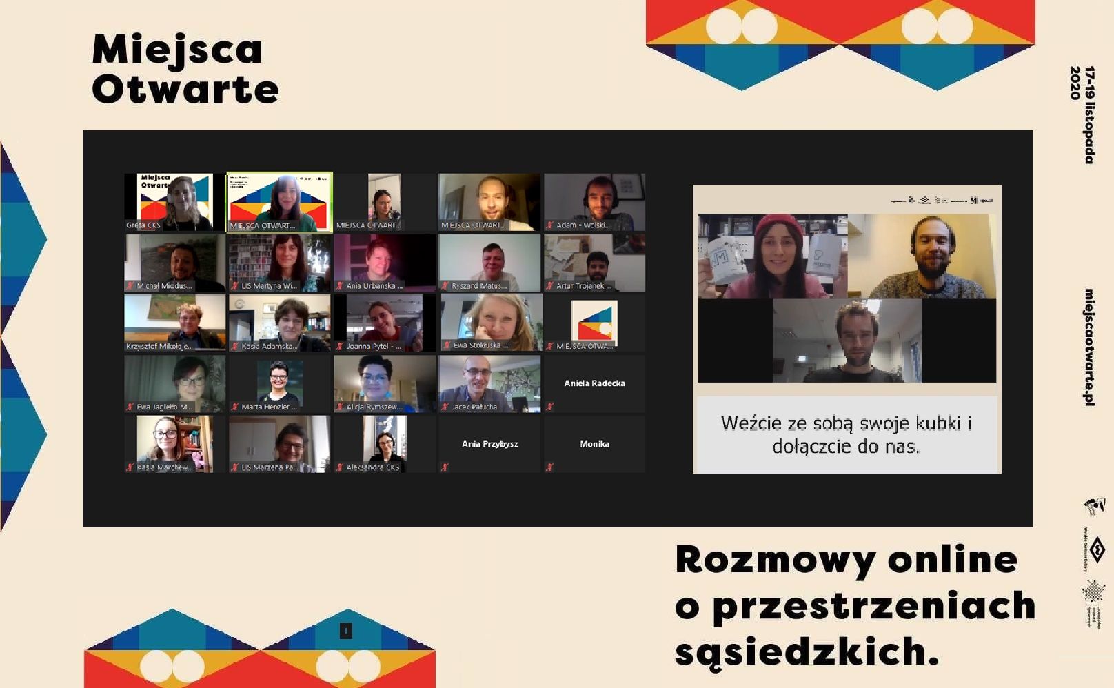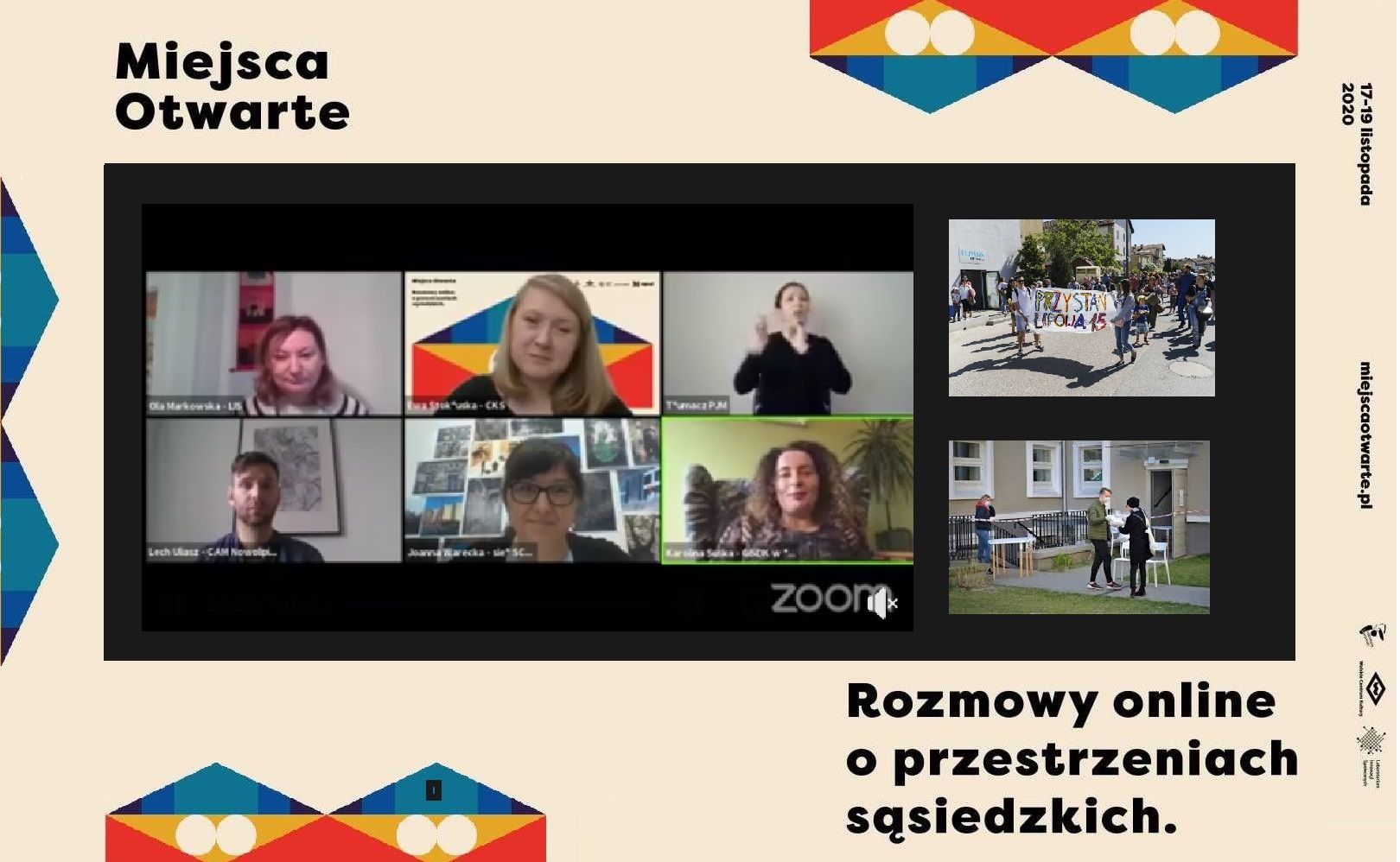 Wydarzenie „Miejsca Otwarte. Rozmowy online o przestrzeniach sąsiedzkich”, które odbyło się w dniach 17-19 listopada 2020 r. było okazją do corocznego spotkania osób prowadzących i wspierających tzw. miejsca otwarte z całej Polski. Pomimo formuły online uczestnikom i uczestniczkom udało się stworzyć przyjazną atmosferę sprzyjającą wymianie doświadczeń i szczerej dyskusji o bieżących wyzwaniach. Organizatorami wydarzenia byli Urząd m.st. Warszawy, Wolskie Centrum Kultury i Laboratorium Innowacji Społecznych z Gdyni.