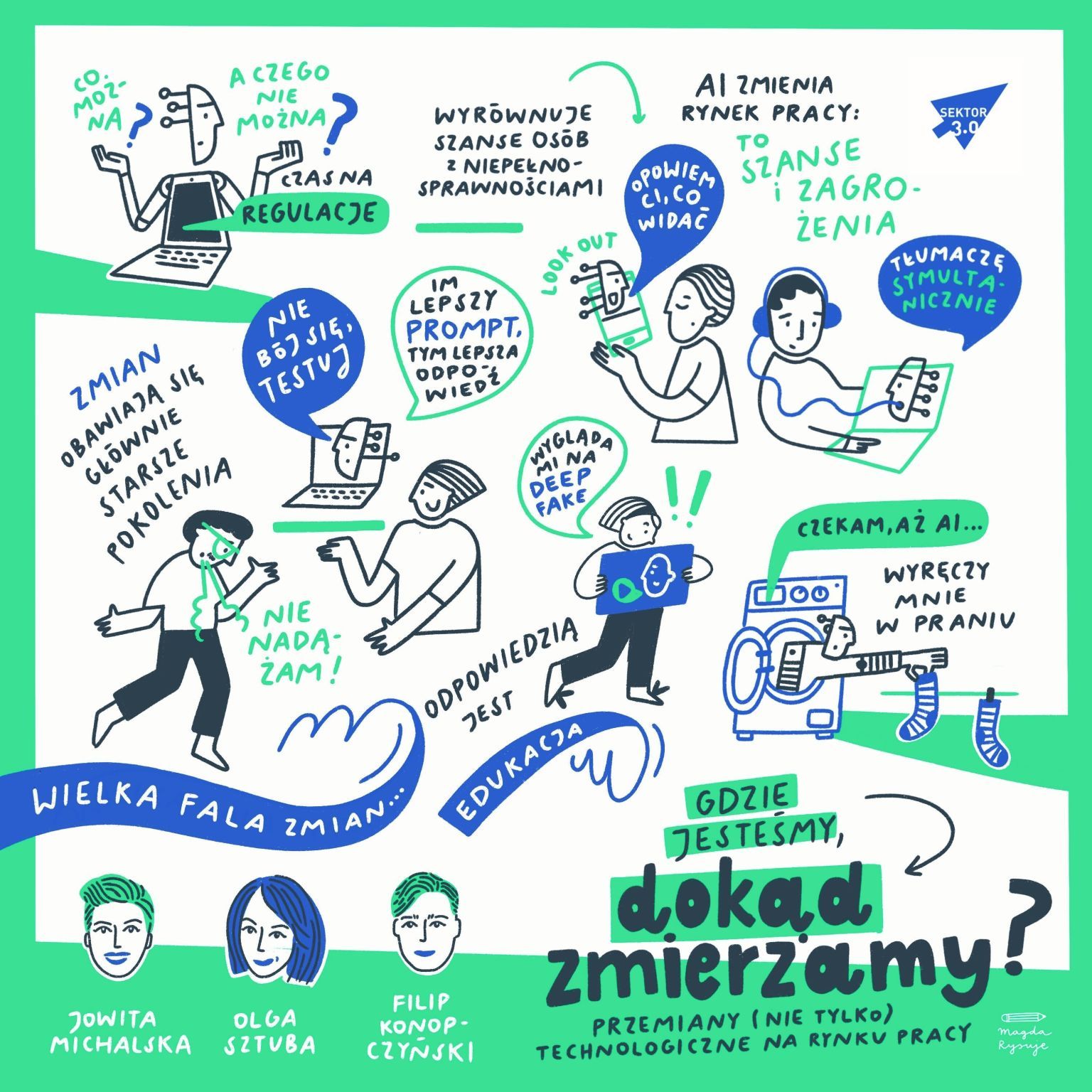 O czym jeszcze dyskutowano? Pojawił się ważny wątek bezpłatnych narzędzi. Dostęp do takich rozwiązań jest istotny dla organizacji społecznych, które często borykają się z brakiem zasobów. Chwalono pracę hybrydową, która pozwala na zachowanie równowagi między efektywnością a zdrowiem psychicznym. Przypominano też o znaczeniu czynnika ludzkiego w dobie technologii – relacje pozostają kluczowe, a technologie powinny je wspierać, a nie zastępować.