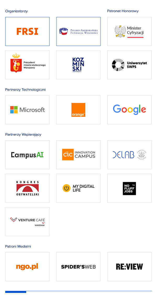 Festiwal to największe i najważniejsze wydarzenie w trakcie roku dla programu Sektor 3.0. Spotkanie to jest więc doskonałą okazją, by uhonorować laureata Nagrody Polsko-Amerykańskiej Fundacji Wolności Sektor 3.0. W corocznym konkursie nagradzamy organizacje społeczne wykorzystujące w swoich działaniach nowe technologie. W dobie silnie rozwijającej się sztucznej inteligencji, sprawne poruszanie się w świecie technologii w istotny sposób wpływa na jej efektywność w działaniu, dlatego szukamy przykładów z branży, które pomogą wyznaczać nowe standardy w trzecim sektorze.
