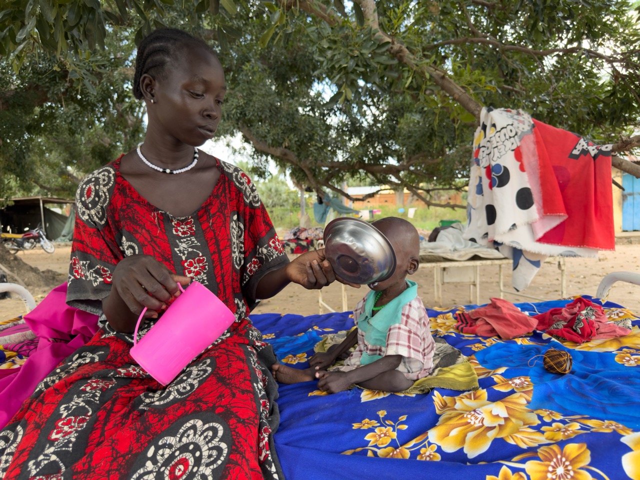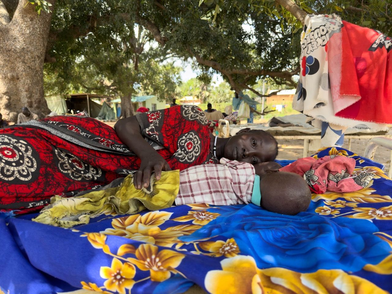 Abuk ma zaledwie 21 lat. Mieszka w wiosce Parot, dwie godziny pieszo od Gordhim. Mąż odszedł, więc dziś wychowuje synka całkowicie sama. Większość matek przychodzących do Gordhim otrzymuje żywność terapeutyczną do domu, dzięki czemu nie muszą codziennie pokonywać wielu kilometrów pieszo. John był jednak w tak złym stanie, że Abuk musiała pozostać z nim na oddziale, gdzie personel mógł na bieżąco monitorować jego stan i postępy w leczeniu. Większość czasu spędzają na szpitalnym łóżku ustawionym w cieniu drzewa. Na „sali szpitalnej” pod blaszanym dachem temperatura jest tak wysoka, że nie sposób tam wytrzymać w ciągu dnia.