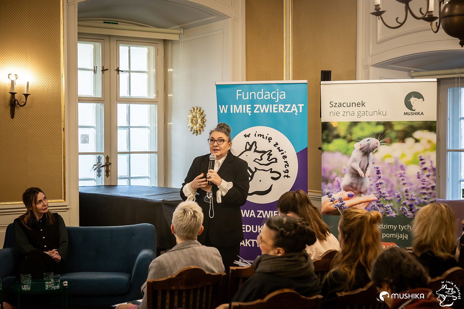 Katarzyna Wypychewicz, założycielka Fundacji Mushika, przedstawiła powody, dla których Fundacja chce "dać głos" zwierzętom pomijanym w debacie publicznej. Przedstawiła także filary działań Mushiki: edukację, rzecznictwo, wsparcie innych organizacji oraz program pokojowej koegzystencji ludzi z innymi gatunkami w miastach.