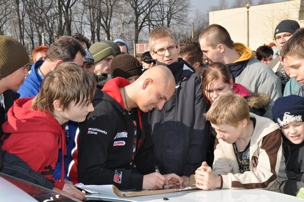 Do Wodzisławia przywiózł na lawecie również swoją rajdówkę, czyli nowe Subaru Impreza. Auto, którego oficjalna prezentacja odbyła się kilka dni temu w Warszawie. Auto było ogromną atrakcją wydarzenia, a spotkanie z rajdowcem - niesamowitą frajdą dla podopiecznych placówki.Kierowca opowiadał o swojej pasji i chętnie odpowiadał na wszystkie pytania widowni. Przyznał, że w aucie najbezpieczniej czuje się tylko za kierownicą i nie lubi być pasażerem. Prezentował swój samochód, zdradzał tajniki rajdowego życia, pozował do zdjęć. Każdy uczeń otrzymał od Mistrza autograf z dedykacją i miał okazję posłuchać ryku rajdowego silnika, odpalonego przez Kajetana, co oczywiście wzbudziło zachwyt wszystkich zebranych. Organizatorzy równie miło zaskoczyli gościa. Przygotowali dla niego niespodziankę – tort z okazji przypadających 5 marca urodzin.