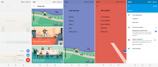Po wybraniu typu aktywności, do którego chcemy się umotywować, musimy zdefiniować częstotliwość działania, jego pożądany czas oraz optymalną dla nas porę. Niektóre aktywności można również połączyć z aplikacjami zewnętrznymi np. Google Fit. Proste menu sprawia, że w wyniku kilku kliknięć oprogramowanie samo wyszuka w naszym terminarzu odpowiednie luki, które za naszym pozwoleniem zapełni wybranymi postanowieniami. Narzędzie przypomni również o konieczności wykonania zadania, pozwoli oznaczyć i śledzić postępy w sumiennej realizacji postanowień. Aby uniknąć problemów, aplikacja z dużym wyprzedzeniem pyta użytkownika, czy zaplanowany termin na pewno mu odpowiada.
