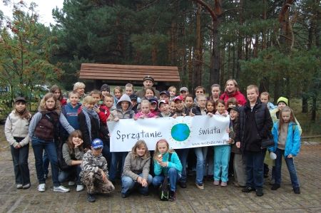 W ramach akcji Sprzątanie świata dzieci biorące udział w programie "Żyj, poznawaj, rozwijaj się" prowadzonego na warszawskim Targówku posprzątały dzisiaj Kampinoski Park Narodowy.