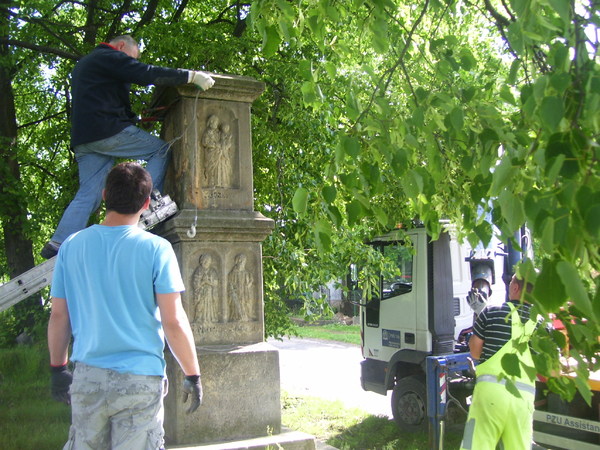 Po ułożeniu izolacji przeciwwilgociowej przywieziono z Krakowa i zamontowano ponownie kapliczkę. Na miejscu odtworzono z piaskowca wszystkie płaskorzeźby znajdujące się na niej. Na koniec całość zabezpieczono specjalnymi powłokami ochronnymi.