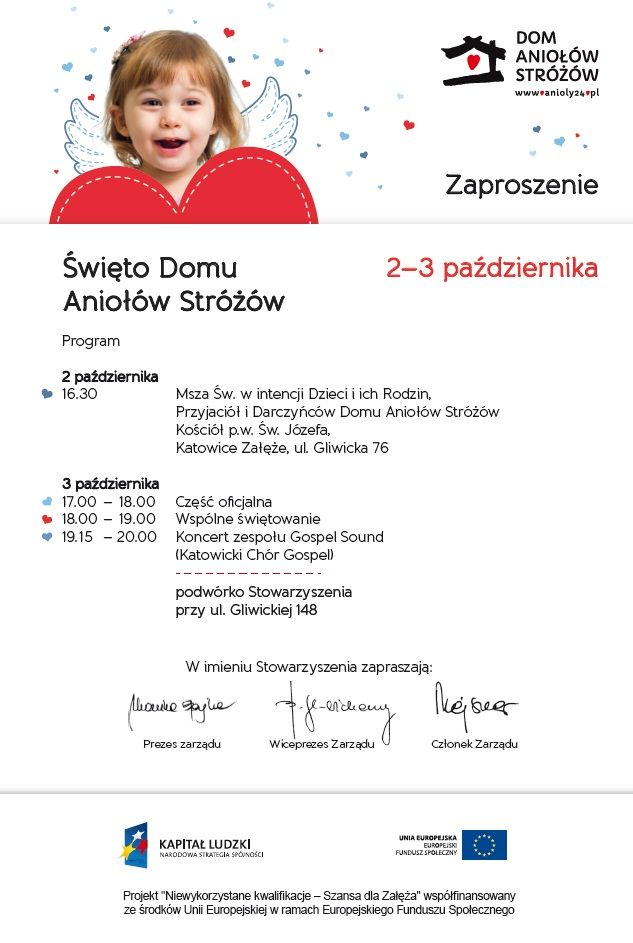 W imieniu Stowarzyszenia pozdrawiam z nadzieją na pozytywne rozwiązanie sytuacji oraz zapraszam do udziału w Święcie Domu Aniołów Stróżów: