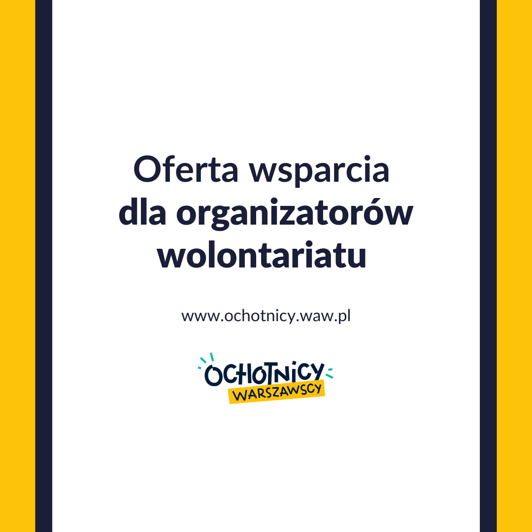 Bezpłatna oferta szkoleń i wsparcia dla organizatorów wolontariatu jest realizowana przez Stowarzyszenie Centrum Wolontariatu w ramach projektu „Ochotnicy warszawscy”. Szczegółowe pytania w sprawie oferty wsparcia prosimy kierować do koordynatorki: Elżbieta Baranowska-Pytko, [email protected], tel. 514 777 399.