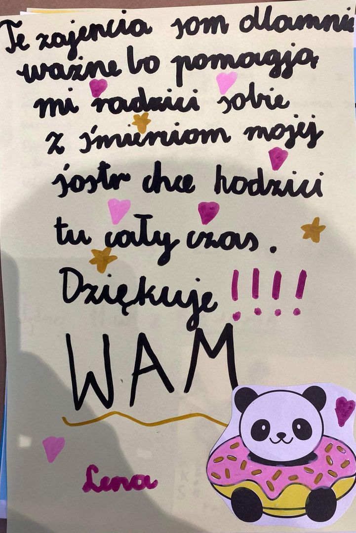 Fundacja Panda Team, od ośmiu miesięcy organizuje zajęcia w grupach wsparcia oraz indywidualne konsultacje psychologiczne dla dzieci i młodzieży w żałobie. Spotkania opierają się na pracy z ciałem, uważności, elementach arteterapii, oraz bajkoterapii. Zajęcia prowadzą specjalistki: psycholożka Dorota Juriewicz oraz pedagożka Ewa Pietrowicz.