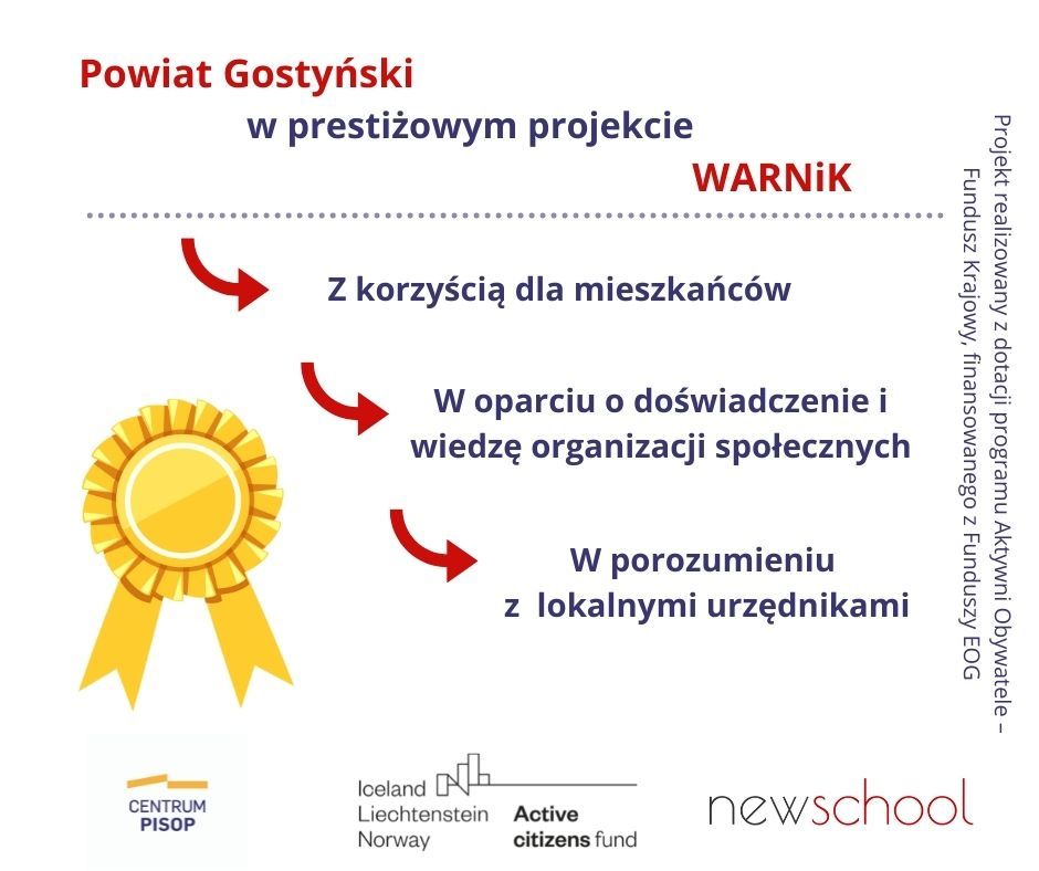 Projekt WARNiK realizowany jest w partnerstwie z norweską firmą Newschool, z dotacji programu Aktywni Obywatele – Fundusz Krajowy finansowanego przez Islandię, Liechtenstein i Norwegię w ramach Funduszy EOG.