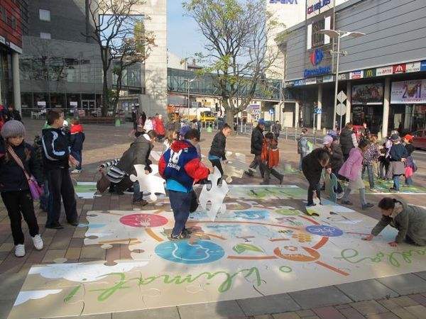 - Zielone miasto – warsztat budowania prawdziwego, zielonego miasta pełnego drzew i wiatraków, z kartonów i metalowych stojaków, malowanych później przez uczniów.