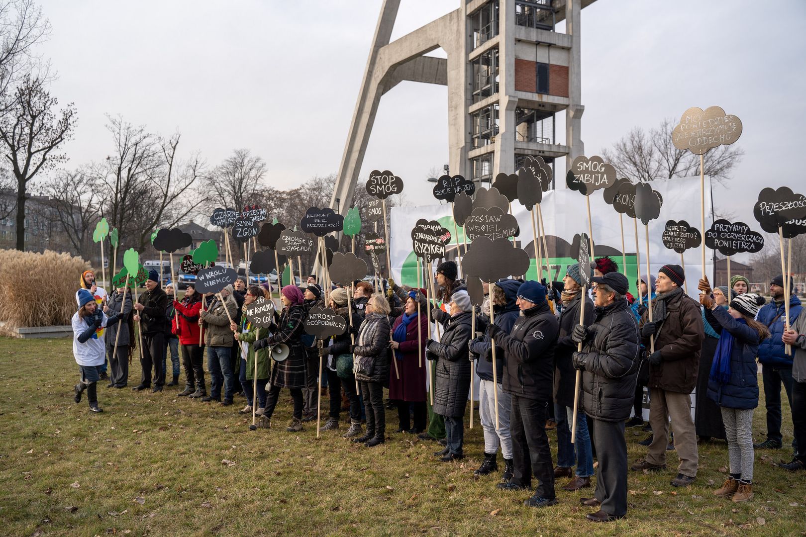 W niedzielę, w samo południe, w Chorzowie odbył się happening „Klimat? Czarno to widzę”, w którym wzięło udział kilkadziesiąt. Uczestnicy i uczestniczki spotkali się w symbolicznym miejscu – zrewitalizowanym kopalnianym Szybie Prezydent, którzy dziś pełni rolę centrum kultury. Centralnym punktem, przygotowanego pod kierunkiem art-aktywistki, Magdy Staroszczyk działania artystycznego były chmury, pomalowane z jednej strony na kolor czarny, z drugiej na zielony. Po czarnej stronie wypisano obawy osób uczestniczących w akcji, po zielonej – potencjalne rozwiązania i nadzieje. W kulminacyjnym momencie czarne chmury (z hasłami „Węgiel to cichy zabójca” czy „Zmiany klimatu”) zostały obrócone na zieloną, symbolizującą perspektywę zmiany („Oze na Śląsku”, „W ludziach siła”), stronę.