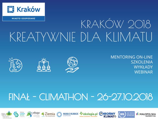- 2 szkolenia pt. „Creative Startup for climate” – szkolenia odbędą się na krakowskich uczelniach: UEK (we współpracy z Katedrą Technologii i Ekologii Wyrobów) oraz AGH (we współpracy z Kołem Naukowym Kadra na Wydziale Zarządzania). Szkolenia będą szansą na zdobycie cennej wiedzy dotyczącej m.in. technik budowy silnego i kreatywnego zespołu, a także wyzwań związanych z działalnością startupów. W trakcie szkoleń przekażemy szeroką wiedzę z zakresu zmian klimatu i ochrony środowiska naturalnego. W ten sposób otworzymy przed uczestnikami możliwość przemyślanego i skutecznego udziału w Climathonie 2018 w Krakowie. Będzie to również doskonała okazja do nawiązania nowych kontaktów biznesowych oraz zawodowych. Dokładny termin i miejsce szkoleń zaprezentujemy niebawem.