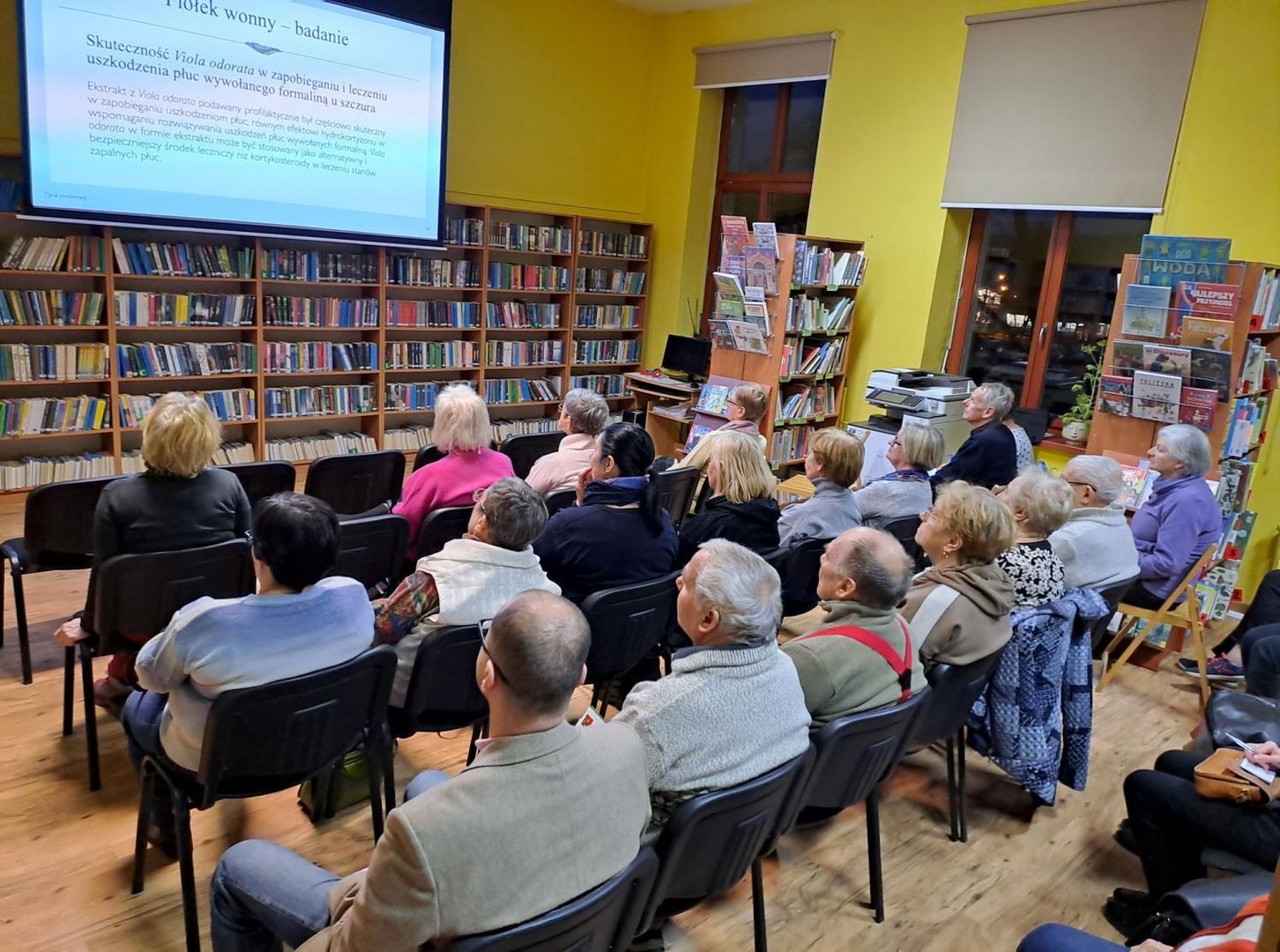 Podczas spotkania uczestnicy dowiedzieli się jakie kwiaty można spożywać na surowo oraz w jaki sposób można z nich wykonać prozdrowotne mikstury. Nie zabrakło praktycznych przepisów na zrobienie sałatki czy mleka baziowego. Nasi goście poznali właściwości kilkunastu mniej lub bardziej znanych kwiatów i ich zastosowanie w różnego rodzaju dolegliwościach. Prelegentka wyjaśniła również jaka jest różnica między naparem a wywarem, maceratem i wyciągiem.
