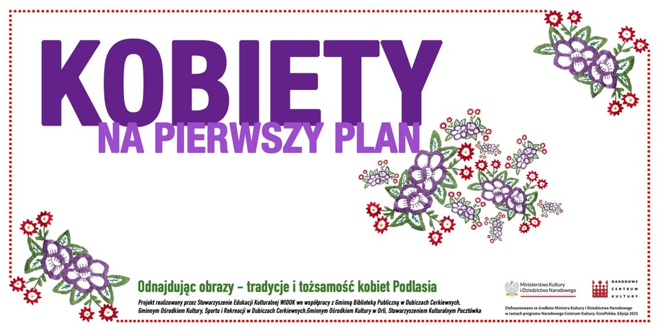Latem Katarzyna Zabłocka, fotografka, wykonała portrety 24 mieszkankom dwóch przygranicznych gmin na Podlasiu: Orli i Dubicz Cerkiewnych. Nie były to zwykłe pamiątkowe zdjęcia – każda z fotografowanych kobiet, pozując, wybierając miejsce oraz rekwizyty, nawiązywała do swoich przodkiń. Portrety będzie można zobaczyć na wystawie „Kobiety na pierwszy plan” w Dubiczach Cerkiewnych. Znajdą się też na niej krótkie herstorie spisane w podlaskiej mowie.