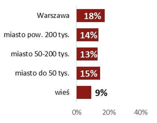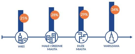 Korzystanie z usług organizacji „wspierających” jest jednak w sektorze pozarządowym dość zróżnicowane. Przede wszystkim, wsparcie od organizacji „infrastrukturalnych” zdecydowanie najczęściej wykorzystywane jest przez organizacje warszawskie, nieco rzadziej przez stowarzyszenia i fundacje z innych miast i wyraźnie najrzadziej przez organizacje z terenów wiejskich. Może to być związane z mniejszą dostępnością organizacji „infrastrukturalnych” na tych terenach.