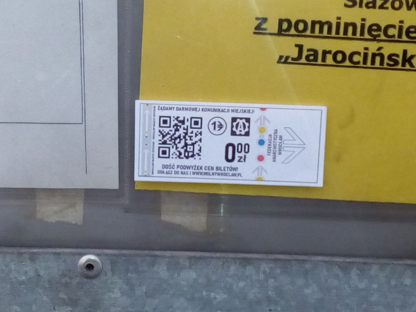 Wrocławska Federacja Anarchistyczna przeprowadziła kilka akcji protestacyjnych przeciwko podwyżce cen biletów na komunikację miejską i promujących Bezpłatną Komunikację Miejską. Jest to kolejna część kampanii prowadzonej przez organizację od roku.