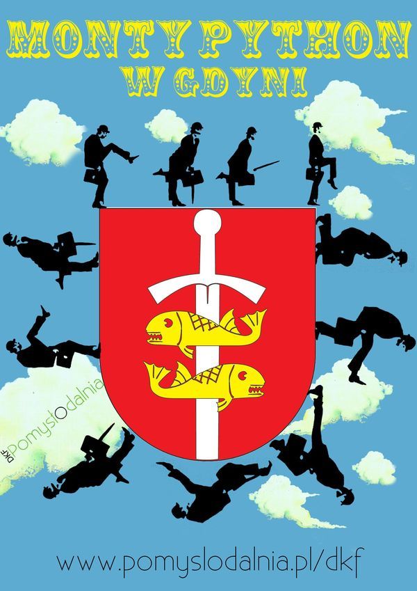 Około sześćdziesięciu mieszkańców Gdyni spotkało się przy fontannie na Skwerze Kościuszki, aby poimprowizować najsłynnieszą scenę "Latającego Cyrku Monty Pythona" - Ministerstwo Głupich Kroków.