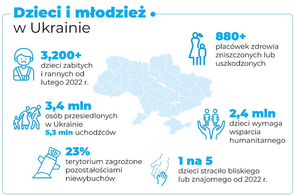 Życie milionów dzieci w Ukrainie nadal kształtuje brutalna i przedłużająca się wojna oraz pogłębiające się potrzeby humanitarne, wpływające na ich dobrostan fizyczny i psychiczny oraz perspektywy na przyszłość.