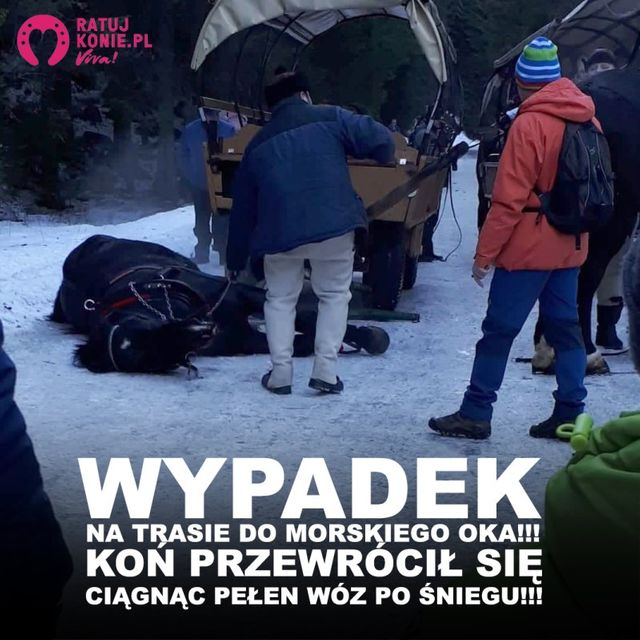 Fundacja Viva informuje, że doszło do kolejnego wypadku z udziałem konia na trasie do Morskiego Oka. Wypadek miał miejsce w drugi dzień świąt – w tym samym dniu, w którym doszło do gigantycznych awantur na Włosienicy z udziałem pseudoturystów, którzy nie chcieli schodzić z Morskiego Oka o własnych siłach.