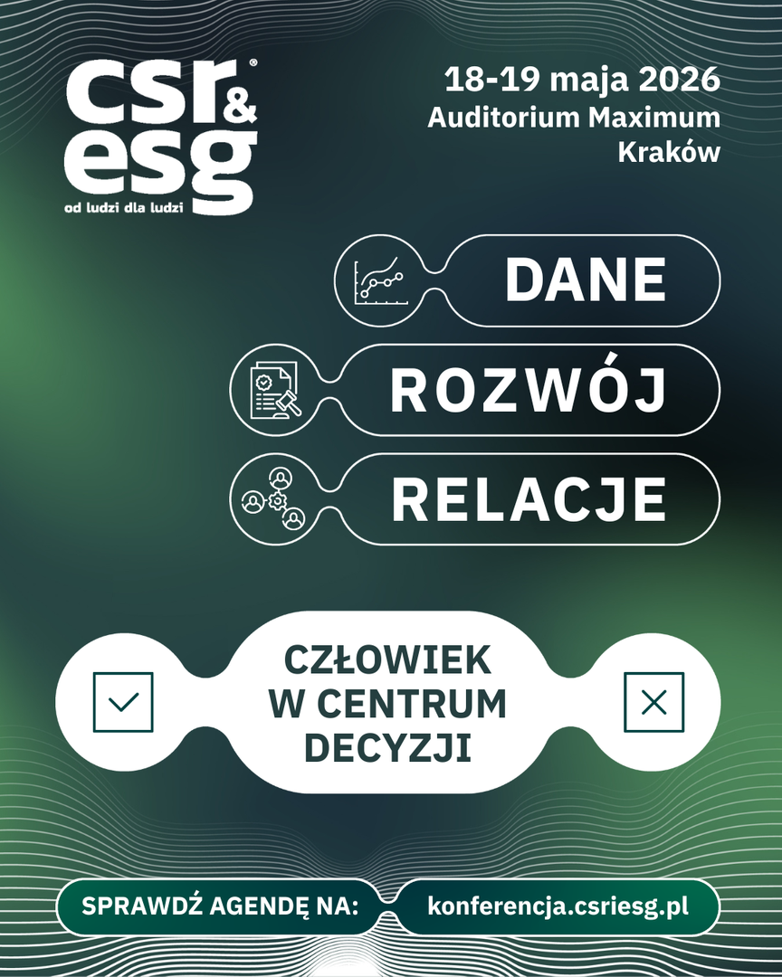 Konferencja CSR i ESG® – od ludzi dla ludzi to przestrzeń dialogu trzech sektorów: biznesu, NGO i administracji publicznej. Tworzymy miejsce, w którym: dane stają się podstawą odpowiedzialnych decyzji, rozwój oznacza realne zmiany, relacje przekładają się na trwałe partnerstwa.