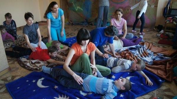 Miłą niespodzianką dla osób biorących udział w warsztatach był nieznany jeszcze tej grupie, seans z terapii dźwiękowej z wykorzystaniem mis i gongów w wykonaniu Andrzeja Białasa „Endi". Terapia ta ma cel relaksacyjny, jednak tym razem cel ten nie został w pełni osiągnięty, gdyż ciekawość naszych najmłodszych milusińskich zwyciężyła! Zarówno maluchy jak i rodzice byli zachwyceni seansem, gdyż nie tylko mogli wsłuchać się w te kojące dźwięki, ale mieli również okazję poznać nazwę wszystkich instrumentów, a nawet zagrać na nich! To była prawdziwa frajda dla wszystkich!