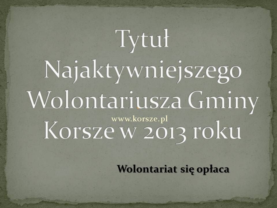 Konkurs o tytuł „Najaktywniejszego Wolontariusza Gminy Korsze 2013 roku” rozstrzygnięty