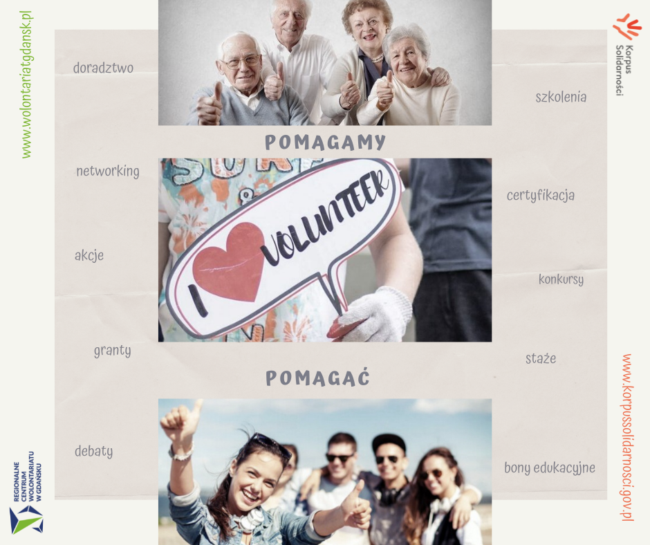 Oferta Korpusu Solidarności adresowana jest zarówno do tych organizacji, które dopiero zaczynają przygodę z wolontariatem, jak i do tych, które mają już w tym zakresie doświadczenie. Dzięki udziałowi w Programie macie okazję podnieść swoje kwalifikacje w zakresie organizacji wolontariatu, a przede wszystkim znaleźć i zaprosić do współpracy nowych wolontariuszy. W woj. pomorskim operatorem Korpusu Solidarności jest Regionalne Centrum Wolontariatu w Gdańsku, które dysponuje ofertą wsparcia zarówno dla organizacji i koordynatorów, jak i dla wolontariuszy uczestniczących w Programie.