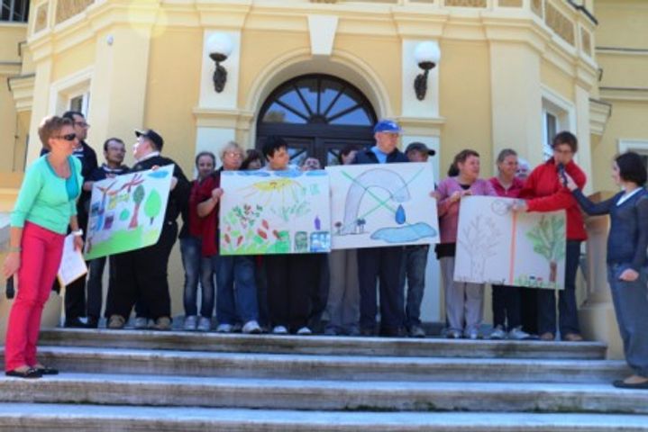 Pierwsza część spotkania poświęcona była ekologii. Mieszkańcy DPS w Chwałkowie i uczestnicy ŚDS w Chwałkowie w zaprezentowanym programie artystycznym propagowali ekologiczny styl życia i zachęcali do oszczędzania wody i energii oraz do segregacji śmieci. Następnie zaprosili przedstawicieli wszystkich placówek do namalowania plakatów promujących wylosowane hasła ekologiczne.