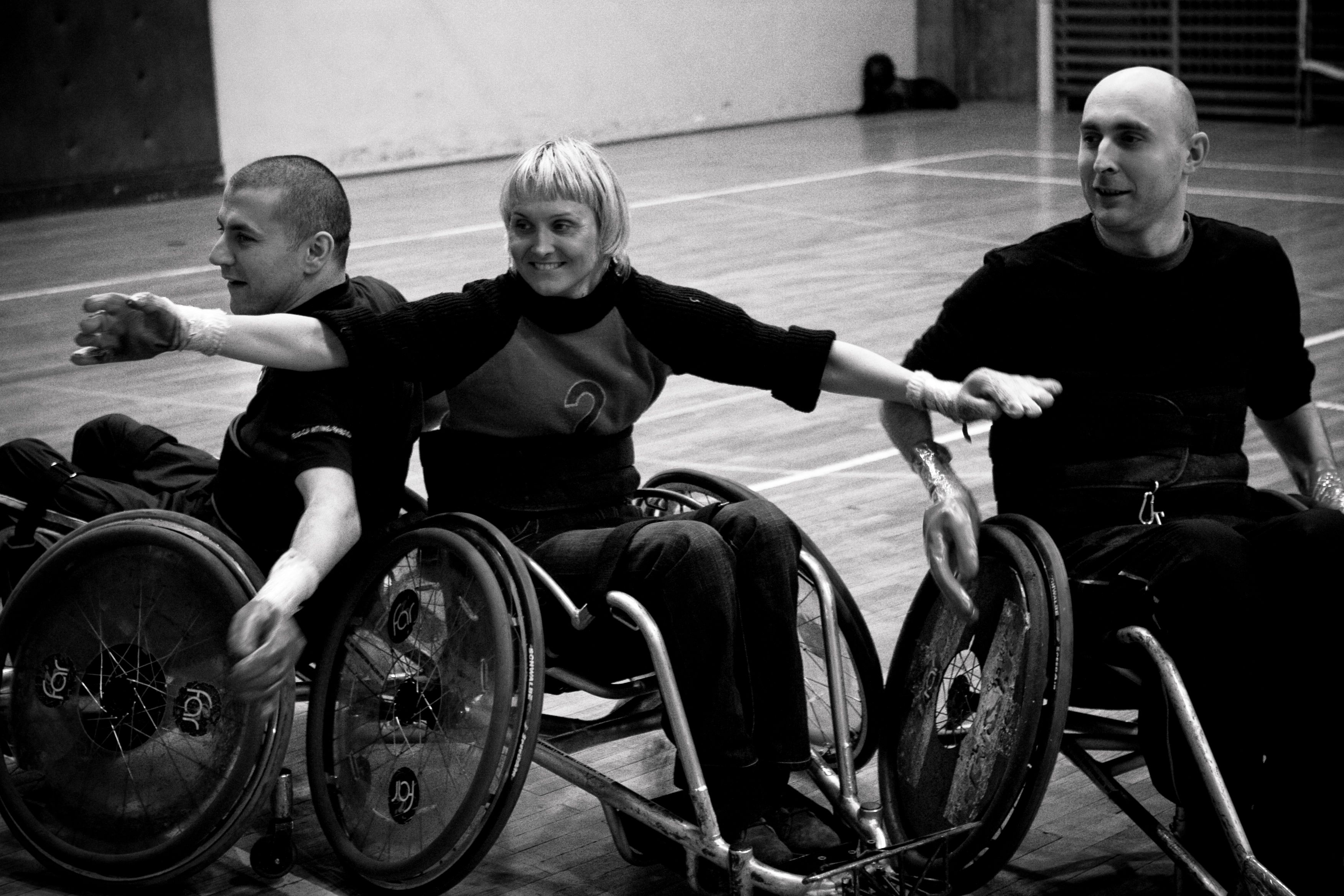Four Wings Warszawa trenują w hali na tyłach popularnego toru łyżwiarskiego Stegny. Wystarczy nadstawić ucha: okrzyki: „trzymaj go!”, „jedziesz!”, głośny trzask i brzdęk metalu uderzającego o metal, nagle chóralne: „jest!”. Punkt zdobyty. Tak do sezonu przygotowuje się czołowy polski klub reprezentujący jeden z najbardziej widowiskowych sportów uprawianych przez osoby poruszające się na wózkach inwalidzkich. fot. Jan Mencwel