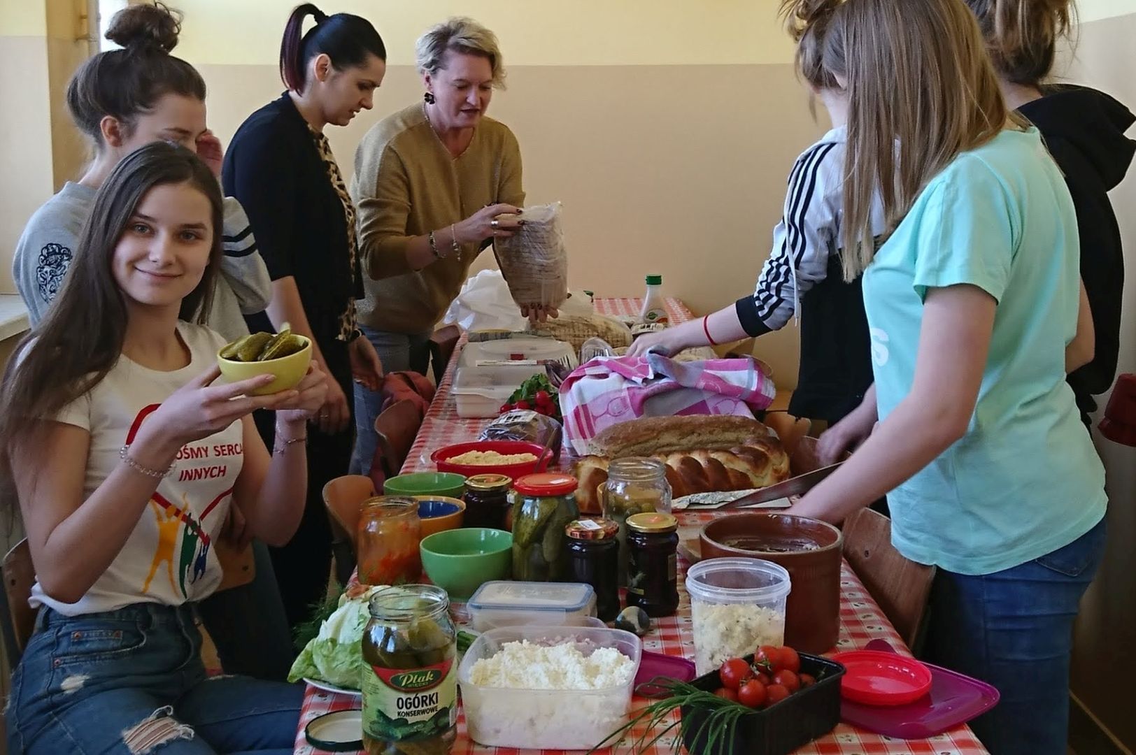 Organizujemy różne formy zbiórek. Dzieci w domu przygotowują gadżety, kartki świąteczne, maskotki, upominki, stroiki, które potem sprzedajemy na małym szkolnym kiermaszu. Tak samo z ciastami: dzieci piekły je z rodzicami w domach, a sprzedawaliśmy je tutaj. Piekliśmy też chleb i sprzedawaliśmy na kiermaszu kromki chleba z masłem. Potem uzbierane w ten sposób pieniądze przekazujemy za pomocą Polskiej Fundacji dla Afryki na potrzeby tego kontynentu – np. na budowę studni.