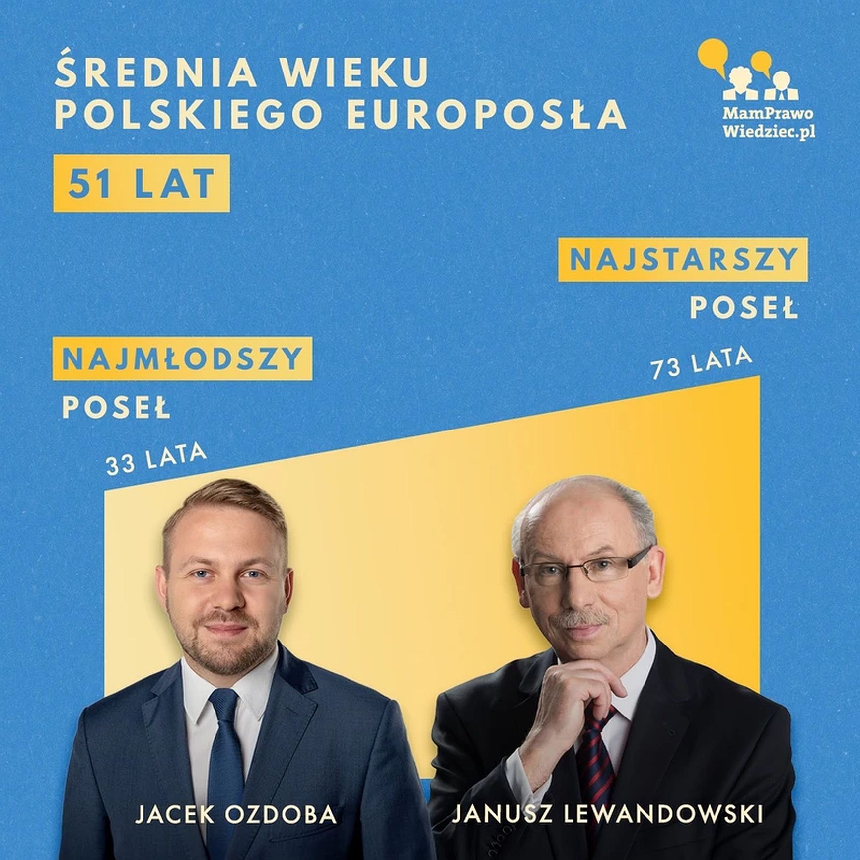 Uśredniony wiek przedstawicieli Polski w Parlamencie Europejskim następnej kadencji wynosi ponad 51 lat. Najmłodszą reprezentację do PE wyśle Konfederacją, a najstarszą Koalicja Obywatelska.