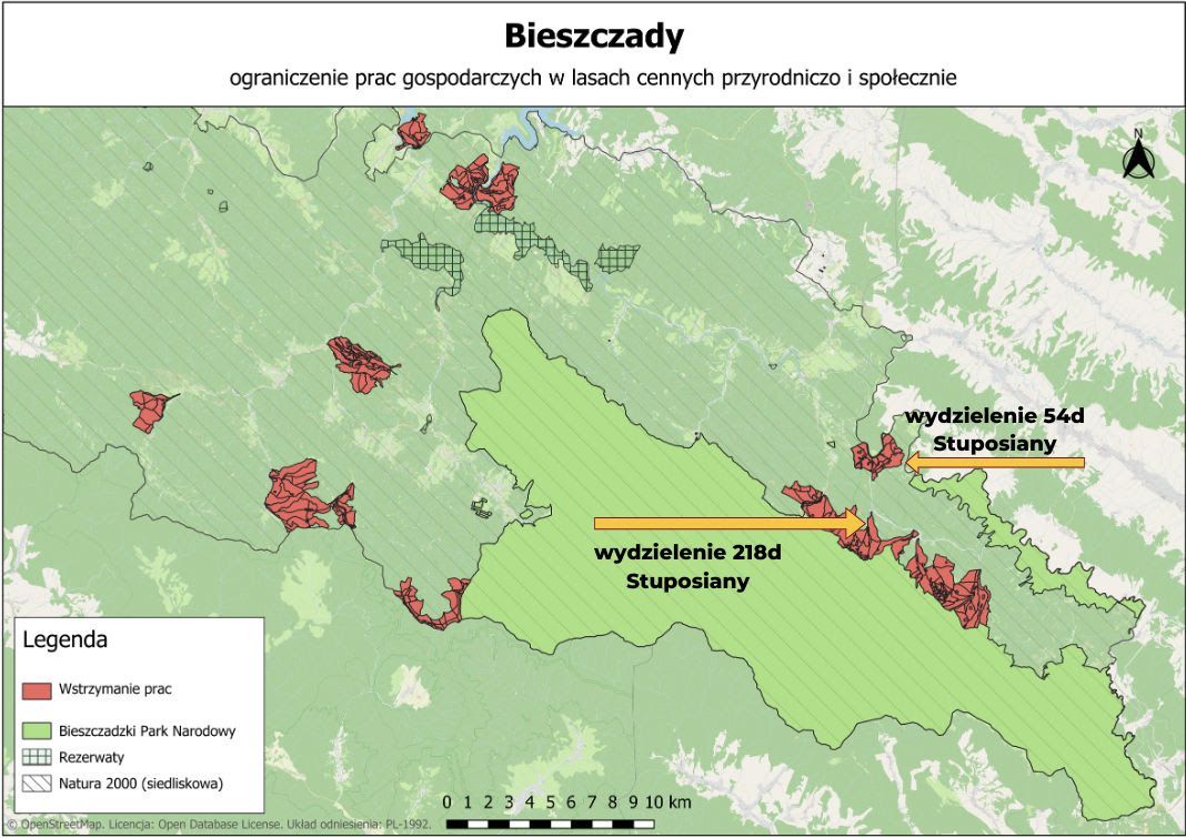 *Sprawdzone przez Greenpeace Polska obszary to, wedle dokumentacji Lasów Państwowych wydzielenia 54d i 218d znajdujące się na terenie Nadleśnictwa Stuposiany. Tereny, które sprawdził Greenpeace Polska, to część z 10 szczególnie cennych przyrodniczo i społecznie obszarów lasów na terenie całej Polski, na których ministerialne moratorium z 8 stycznia wstrzymało wycinki na okres sześciu miesięcy. Na terenie lasów wokół Iwonicza-Zdroju przypadki łamania moratorium zgłaszała ostatnio Pracownia Na Rzecz Wszystkich Istot.