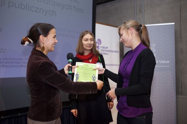 Pierwsze miejsce w konkursie zajęła firma Diversey Polska Sp. z o.o. Przyznano także dwa wyróżnienia, jedno dla Miejskiego Przedsiębiorstwa Oczyszczania w m.st. WarszawieSp. z o.o.oraz drugie dla Johnson Controls Siemianowice Sp. z o.o. „Laureatom konkursu serdecznie gratulujemy, a wszystkim pracownikom biur życzymy niegasnącego entuzjazmu w podejmowaniu działań proekologicznych w swoim miejscu pracy” – powiedziała Joanna Mieszkowicz, Prezes Fundacji Aeris Futuro, wręczając laureatom eko-certyfikaty i nagrody. Główną wygraną jest ekologiczny wyjazd integracyjny dla członków nagrodzonego zespołu. Będzie to kolejna okazja do kształtowania ekologicznych postaw, a to właśnie Fundacja Aeris Futuro stawia sobie za cel. Pracownicy nagrodzonego projektu zostaną zaproszeni na rejs po Wiśle do rezerwatu ptasiego na Kępie Zawadowskiej. Specjalnie dla Zwycięzców obiad w remizie przygotują Członkinie Koła Gospodyń Wiejskich. Do swojego ekologicznego biura przy ul. Fabrycznej w Warszawie pracownicy dopłyną statkiem.