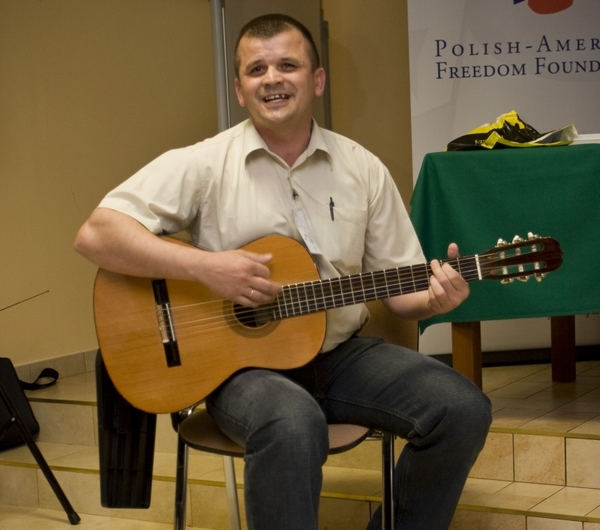 Uczy się skromności, choć to niełatwa lekcja: Nie muszę już stawać na piedestale, a moja rola animatora stała się dla mnie powodem do dumy. Było mi trochę przykro, gdy w zeszłym roku na obchodach dnia niepodległości siedziałem już tylko na widowni. Przecież to ja od lat zawsze wszystko organizowałem! Tym razem zaktywizowałem kilka środowisk, połączyłem, skontaktowałem różne zespoły, zaangażowałem i usunąłem się w cień. To również ważna umiejętność. Animacja społeczna to od niedawna nowe narzędzie jego pracy, efekt ukończonej w czerwcu tego roku Szkoły Animatorów Społecznych Województwa Warmińsko-Mazurskiego.