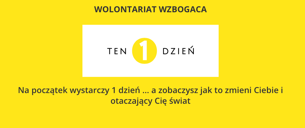 Celem kampanii „Ten 1 dzień” (www.ten1dzien.pl) jest zintensyfikowanie rozwoju wolontariatu pracowniczego w Polsce.Przewodnie hasło kampanii „WOLONTARIAT WZBOGACA” ma pokazywać korzyści i wartości wolontariatu w każdej jego postaci, a szczególnie wolontariatu pracowniczego, inspirować zarówno pracowników, jak i pracodawców, do uczestnictwa w działaniach społecznych. Zyskują na tym wszyscy: pracownicy, firma, środowisko, społeczności lokalne i wielu innych.