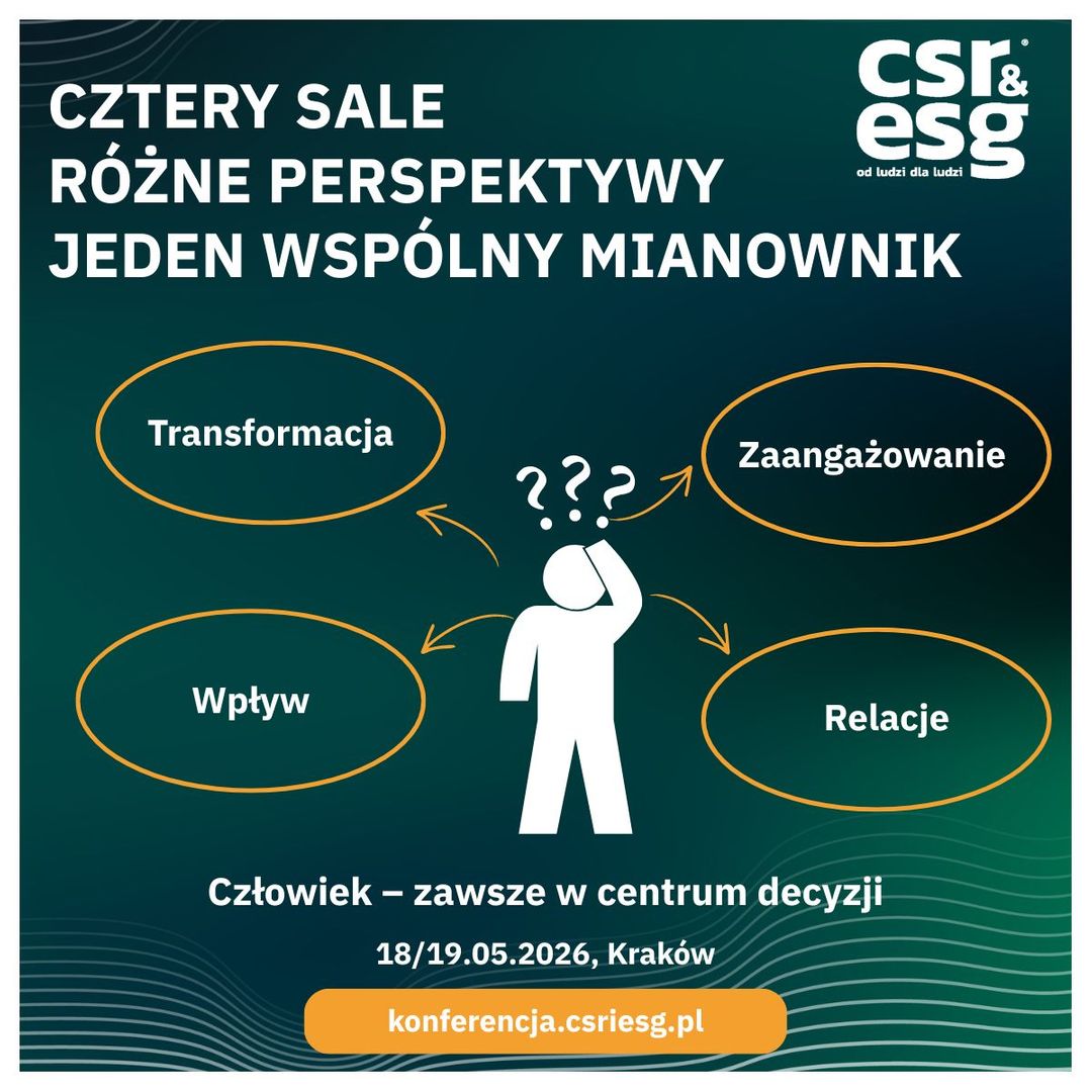 W świecie, w którym decyzje trzeba podejmować szybciej niż kiedykolwiek, a konsekwencje tych decyzji są coraz bardziej złożone, liderzy biznesu, organizacji pozarządowych i administracji stają przed wspólnym wyzwaniem: jak działać odpowiedzialnie, skutecznie i długofalowo jednocześnie. Odpowiedzi na te pytania będą szukać uczestnicy Konferencji CSR i ESG® – od ludzi dla ludzi, która odbędzie się 18–19 maja 2026 roku w Auditorium Maximum Uniwersytetu Jagiellońskiego w Krakowie.