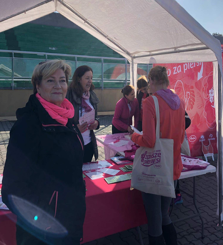 Prowadzimy także spotkania profilaktyczne z elementami samobadania piersi, w tym z wykorzystaniem fantomów, w poznańskich zakładach pracy, szkołach, czy podczas różnych wydarzeń organizowanych przez miasto Poznań.