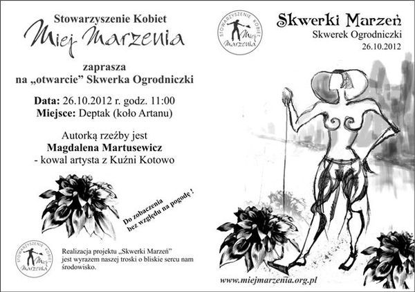Stowarzyszenie Kobiet "Miej Marzenia" zainaugurowała skwerek w centrum Lidzbarka Warmińskiego ustawiając na nim rzeźbę ogrodniczki. To kolejna nietuzinkowa idea działającego już od 2008 roku stowarzyszenia. Więcej informacji i zdjęć na www.miejmarzenia.gov.pl