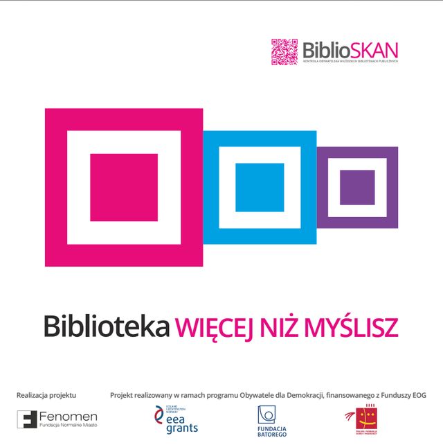 W ramach projektu "Biblioskan" Fundacja Normalne Miasto - Fenomen stworzyła poradnik dla mieszkańców Łodzi o miejskich bibliotekach publicznych. Instytucje i organizacje zainteresowane otrzymaniem nakładu drukowanych broszur zachęcamy do kontaku: biblioskan[at]fundacjafenomen.pl.