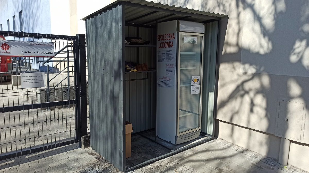 Po ponad dwóch miesiącach przerwy, przy siedzibie Caritas Archidiecezji Łódzkiej w Łodzi, od strony ul. Kopernika 13, stanęła znów lodówka społeczna. Pod specjalną wiatą znalazły się też wieszaki i półki na inne rzeczy, które możemy ofiarować osobom potrzebującym pomocy. Nowa lodówka społeczna z regałem na suchy prowiant i odzież stanęły pod zadaszeniem dzięki zaangażowaniu Stowarzyszenia „Chleba Naszego”, sponsorów i prywatnych darczyńców.