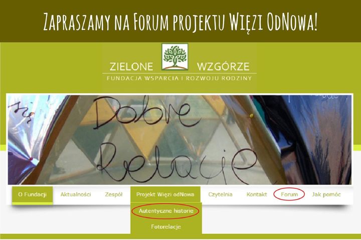 Fundacja Wsparcia i Rozwoju Rodziny „Zielone Wzgórze” zaprasza do zarejestrowania się na forum internetowym projektu Więzi odNowa.