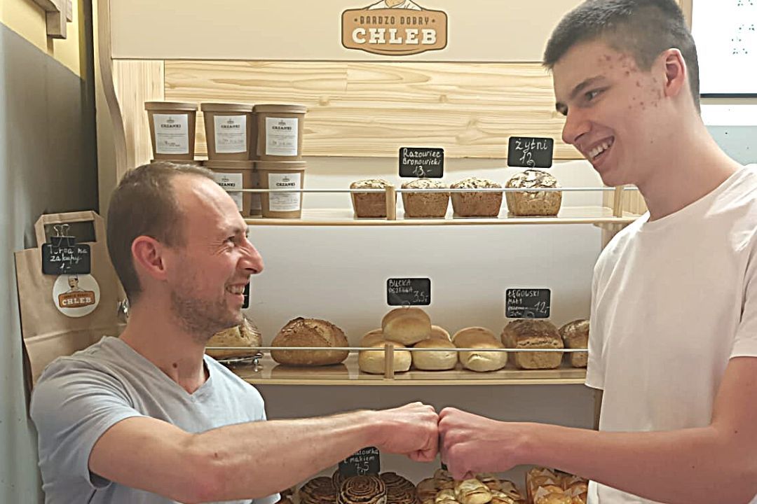 Jesteśmy w krakowskiej dzielnicy Bronowice. Na jednej z osiedlowych ulic roznosi się przyjemny zapach świeżo upieczonego chleba. To znak, że zbliżamy się do celu, czyli piekarni rzemieślniczej Bardzo Dobry Chleb (https://www.facebook.com/BardzoDobryChleb/). W Kolpingu całym sercem wspieramy małe, lokalne biznesy, dlatego ucieszyliśmy się, że to właśnie pan Paweł, piekarz pasjonat zdecydował się na współpracę z nami i przyjęcie na staż uczestnika naszego projektu aktywizacji zawodowej – siedemnastoletniego Ihora z Ukrainy.