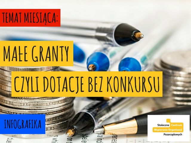 „Mały grant” to potoczna nazwa dotacji udzielanej przez samorząd poza konkursami. Właśnie pojawiają się pierwsze informacje o dostępnych środkach w poszczególnych dzielnicach i biurach Urzędu m.st. Warszawy. Jeśli chcesz poznać podstawowe informacje na temat tego, jak sięgnąć po te pieniądze, zapoznaj się z naszą infografiką.
