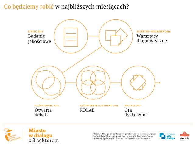 W listopadzie odbyły się trzy spotkania grupy roboczej KOLAB, której zadaniem jest opracowanie scenariuszy możliwych rozwiązań dla nowej struktury dialogu administracji samorządowej Warszawy z organizacjami pozarządowymi. W grupie pracują przedstawiciele i przedstawicielki NGO, urzędów dzielnicowych i biur miejskich oraz radnych. To element większego procesu Miasto w dialogu z 3 sektorem. Powoli krystalizują się trzy alternatywne wizje struktury dialogu.