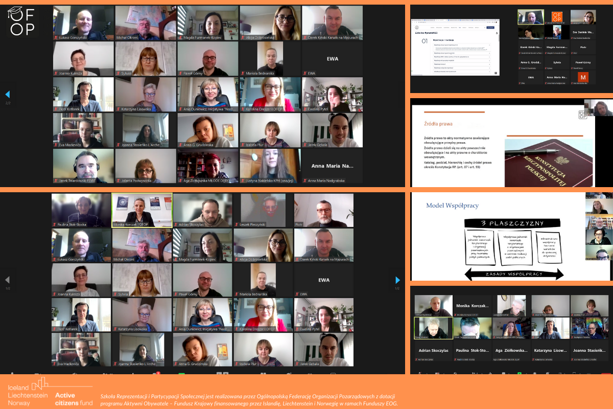 Doskonałym podsumowaniem tego zjazdu Szkoły Reprezentacji i Partycypacji OFOP-u było spotkanie z władzami i pracownikami Ogólnopolskiej Federacji Organizacji Pozarządowych. Bowiem wnioski z wykładów (szczególnie zaś z wykładu Piotra Vagli Waglowskiego) były takie, że monitorowanie prawa dla organizacji pozarządowych i działania na rzecz jego usprawniania to zadanie nie dla jednej osoby. Nawet nie dla jednej organizacji. To proces, który może być skuteczny tylko podczas "gry zespołowej", w ramach której "podzielimy się robotą" i wykorzystamy różnorodne formy nacisku na polityków, na legislatorów. Gdy będziemy mogli, dzięki współpracy, przeczytać odpowiednio dużo dokumentów, uda nam się przygotować wystarczająco dużo analiz, zaproponować wystarczająco dobre rozwiązania. Współdziałanie w ramach federacji to jeden ze sposobów odpowiedzenia na te potrzeby i uzgadniania długofalowych celów rzecznictwa – dotyczących już bardziej pojęcia ius niż lex.