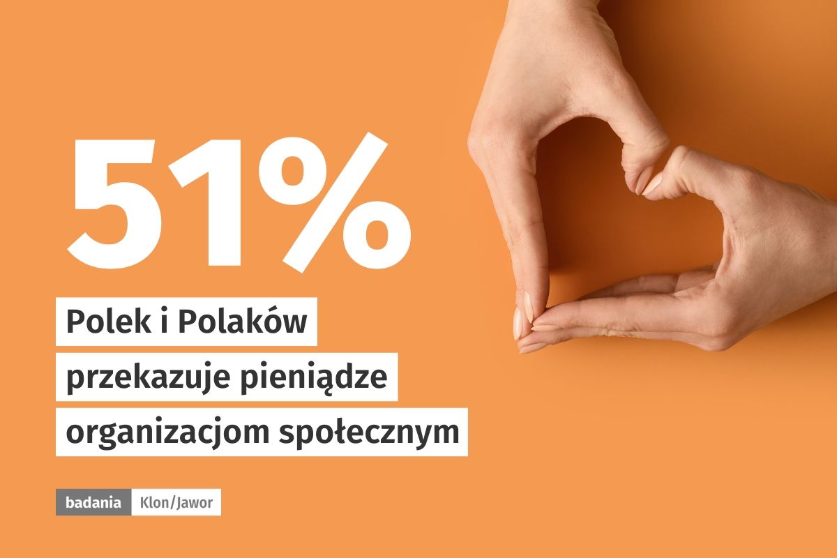 Połowa, a dokładnie 51% Polek i Polaków wspiera finansowo organizacje pozarządowe. Najczęściej deklarowaną przez polskie społeczeństwo formą wsparcia jest przekazywanie pieniędzy organizacjom kilka razy do roku. Co trzeci Polak lub Polka dokonują takiego wsparcia, a zazwyczaj są to osoby aktywne zawodowo, o średnich zarobkach i z wyższym wykształceniem.