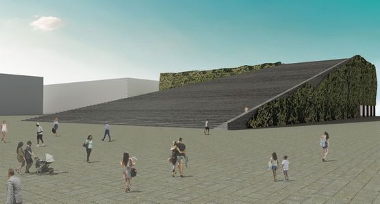 Projekt wyróżniony jako rozwiązanie architektoniczne uwzględniające zastany kontekst przestrzenny. Ten współczesny amfiteatr uzupełnia ofertę placu o salę koncertową oraz otwartą widownię w centrum miasta. Zewnętrzne schody pozwalają na gromadzenie się ludzi w różnych celach – nie tylko obserwacji wydarzeń na placu, ale po prostu odpoczynku i relaksu. Rozwiązanie ponadto umożliwia widok na szeroką panoramę placu. Poprzez wprowadzenie rozwiązania architektonicznego, nadaje mu nową formę i możliwości użytkowania.