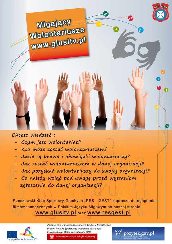 Rzeszowski Klub Sportowy Głuchych od maja do listopada 2011 r., w ramach Europejskiego Roku Wolontariatu 2011, realizuje projekt: "Migający Wolontariusze na www.glusitv.pl". Podstawowym celem projektu jest zwiększenie wiedzy, a tym samym świadomości osób niesłyszących w zakresie wolontariatu.
