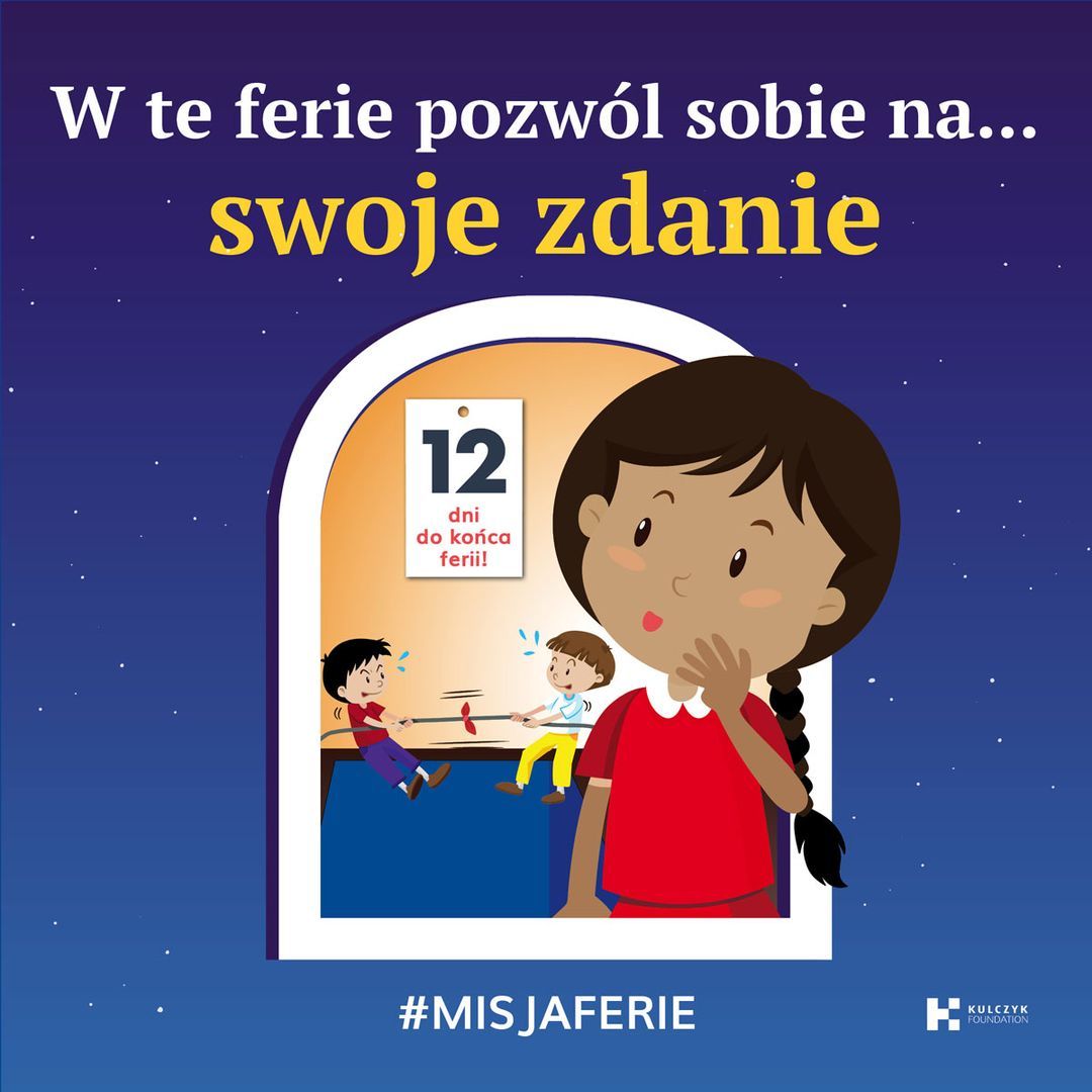 Jako ojciec trzech córek, doskonale rozumiem, przed jak ogromnymi wyzwaniami stoją obecnie rodzice. Poza zwykłymi problemami, które przynosiła jak dotąd codzienność, pojawiły się również te związane z pandemią i wyjątkowo długą rozłąką ze stacjonarną nauką, której doświadczają nasze dzieci. Właśnie dlatego stworzyliśmy akcję #MisjaFerie. W jej ramach proponujemy sposoby na poprawę samopoczucia – tak rodziców, jak i dzieci. Zapraszamy do korzystania z nich i wspólnego odliczania do końca tych nietypowych, wyjątkowo długich ferii - mówi Przemysław Pohrybieniuk, Dyrektor Zarządzający Kulczyk Foundation.